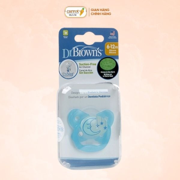 Ti Ngậm Dr.Brown's Dạ Quang Silicon Siêu Mềm Cho Bé 6-18M Xanh