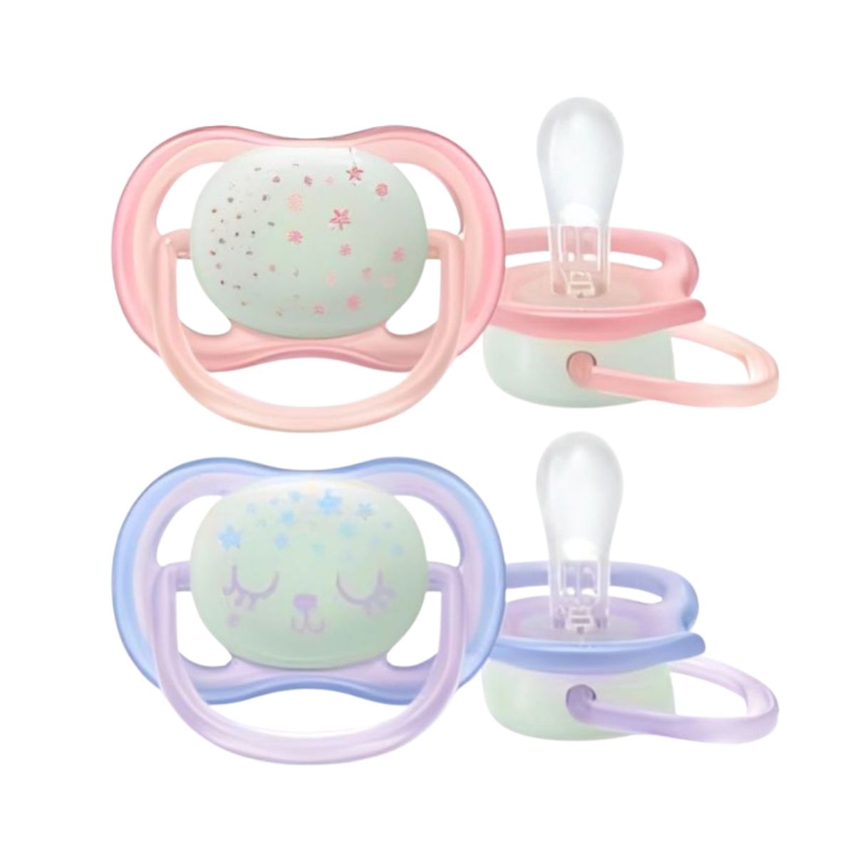 - Các mẫu ty ngậm Avent 0-6m hay ty ngậm Avent 6-18m đều có thiết kế miếng che của ty ngậm nhẹ và các cạnh lượn tròn tạo cảm giác thoải mái cho bé khi ngậm.