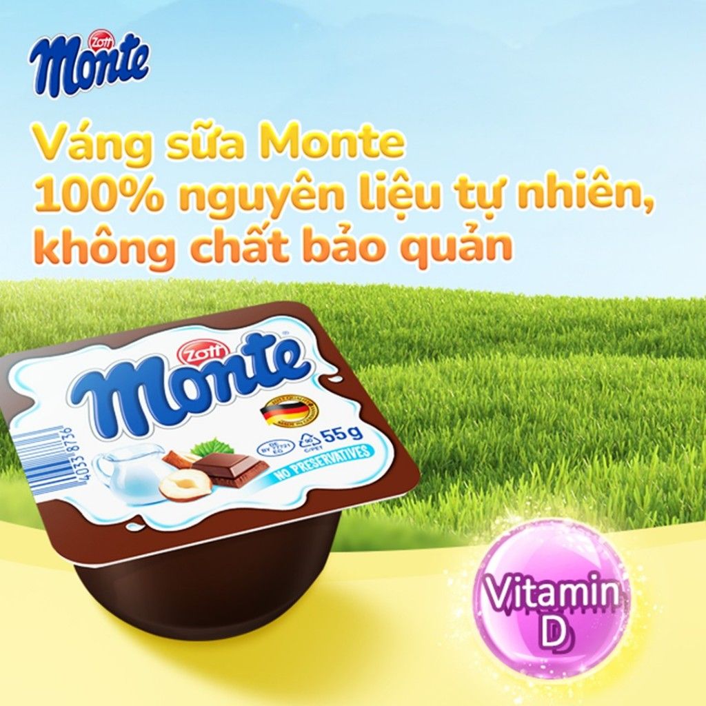 - Trên thị trường sữa Việt Nam, váng sữa Monte nhập khẩu chính thức từ Đức là sản phẩm được nhiều người tiêu dùng ưa chuộng. Dòng sữa Monte là sự hòa quyện của sữa nguyên chất (50%) cùng với kem sữa hảo hạng chứa nhiều chất béo, vitamin làm nên một món ăn mới lạ và ngon miệng.