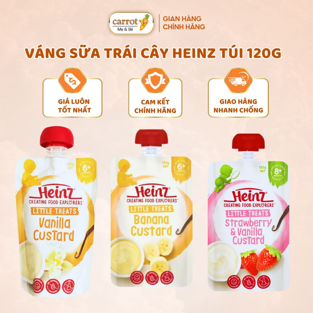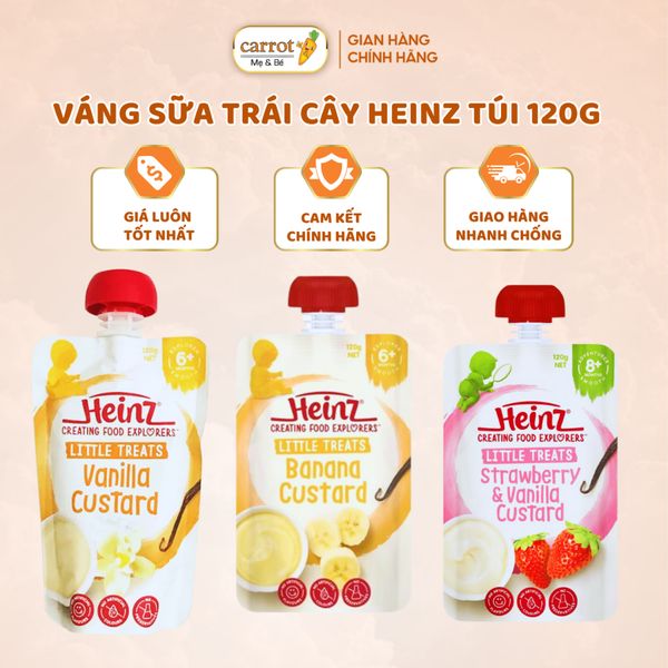 - Với hương vị thơm ngon, không quá béo ngậy và ngọt nhẹ, váng sữa Heinz Custard kích thích vị giác của trẻ, giúp chúng ăn nhiều hơn và cải thiện hệ tiêu hóa