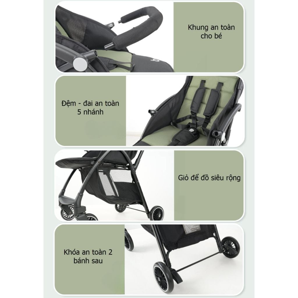 - Có giỏ chứa đồ lớn phía dưới, tiện cho việc chứa đồ dùng cho bé khi đi ra ngoài.