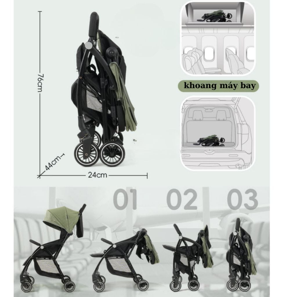 - Thiết kế thông minh cùng trọng lượng nhẹ nên bạn có thể dễ dàng gấp gọn xe nhanh chóng, để vừa được khoang hành lý máy bay và cất gọn được dưới ghế ngồi ô tô hay di chuyển bằng xe máy…